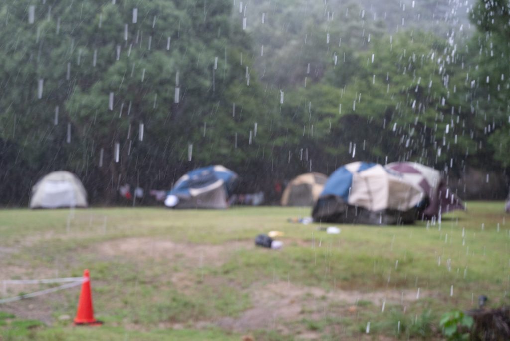 1日目の大きな出来事は、夕食前に突然の大雨と強風に見舞われたことです。固定が十分でなかったテントやフライシートをかけていなかったテントは大きな影響を受け、寝床や荷物が濡れてしまいました。その後、各グループはリーダーを中心に、テント内を拭き上げたり荷物を移動したりと対応を進め、状況によってはキャビンに移動して宿泊する判断を行いました。思いがけないトラブルではありましたが、グループごとに話し合い、最適な解決策を導き出す経験は、キャンプ初日から大きな学びの機会となりました。