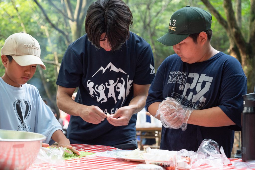 YMCAのキャンプにはさまざまな特色があります。その中でもフォレスターズキャンプや地球人キャンプは、特に「村社会」という言葉がよく似合うキャンプだと感じています。小学1年生から6年生、リーダー、さらに地球人キャンプの仲間や大人のボランティアまで、幅広い年代がひとつの場で共に生活をします。寝床をつくり、食事をし、体を動かし、夜になれば眠る。ごくあたりまえの生活を、一緒に行う。その営みこそが、このキャンプの大切なプログラムです。