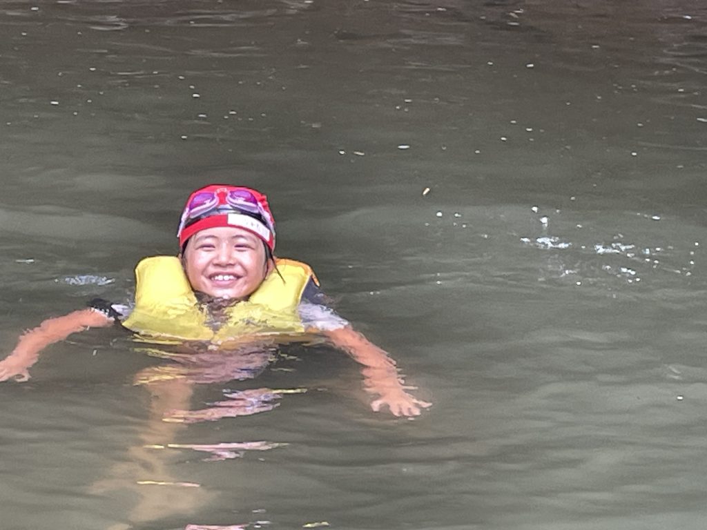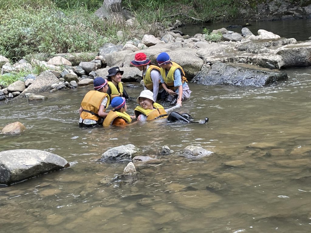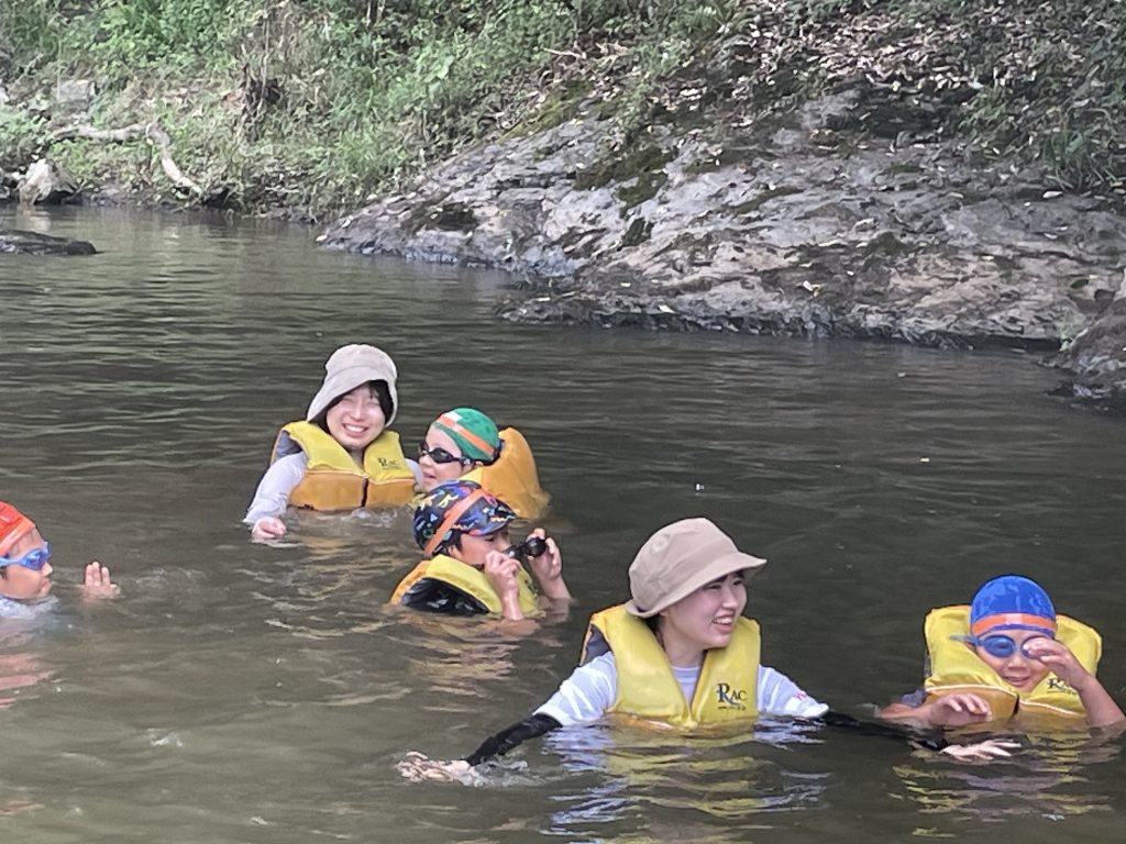 ライフジャケットを使って、ぷかぷか浮くのを楽しんだり、少し流れがあるところにいき、流れに身を任せて遊ぶ姿もありました。
