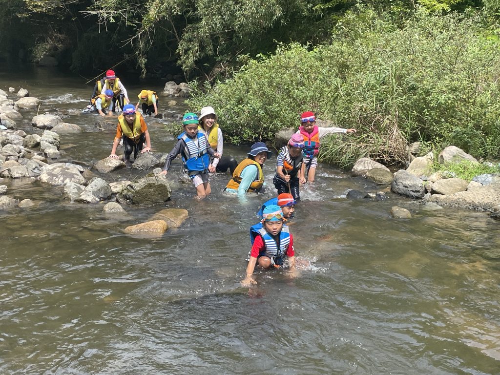事前に川での安全に遊ぶ方法や気を付けないといけないことを話しをして遊びます。