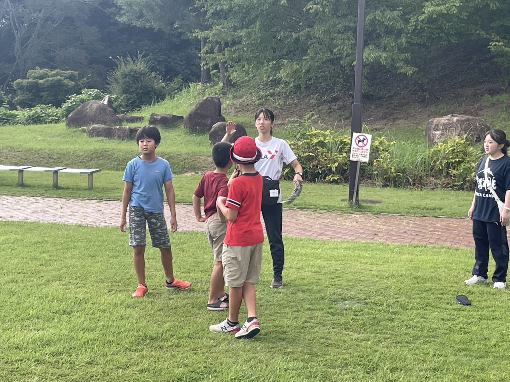 帰りまで少し時間があったので、グループで基地づくりをしたり、芝生で靴飛ばしをして遊んだりとそれぞれ時間いっぱい楽しみました。