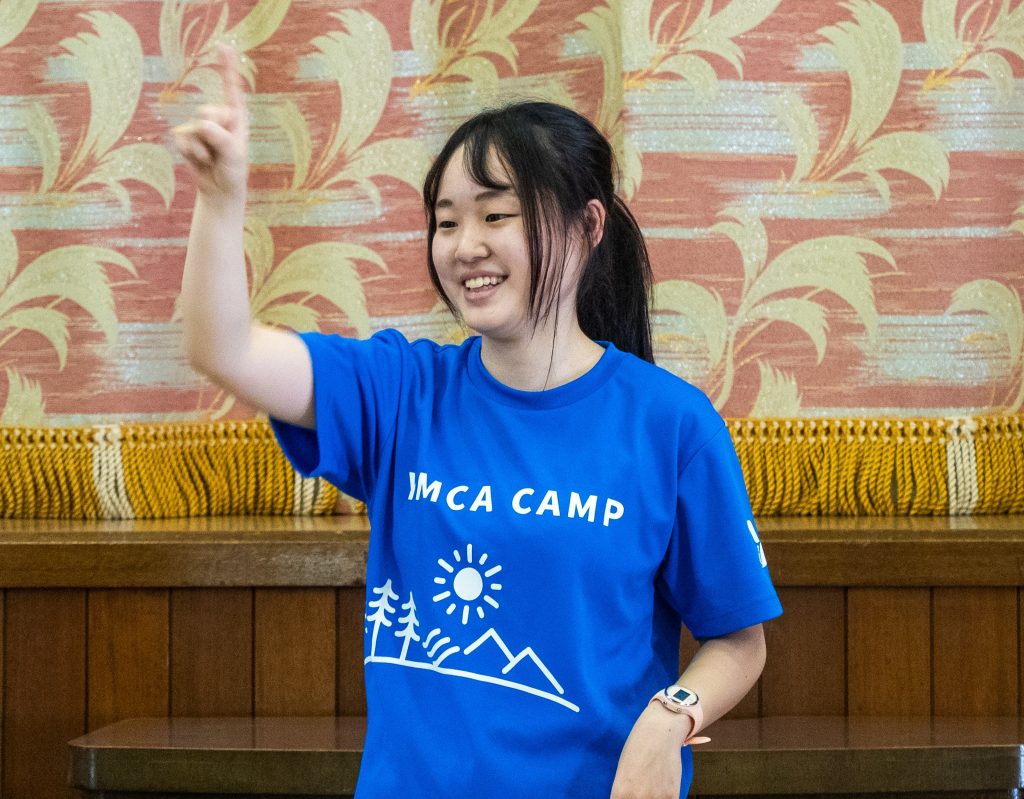 初日は「三徳園」に集合。初めてYMCAのキャンプに参加するメンバーも多く、少しドキドキしながらのスタートでした。グループで自己紹介をしたあと、海賊王からのメッセージが流れてきました。「かっこいい~!」「何が始まるんだ?」とみんなわくわく。