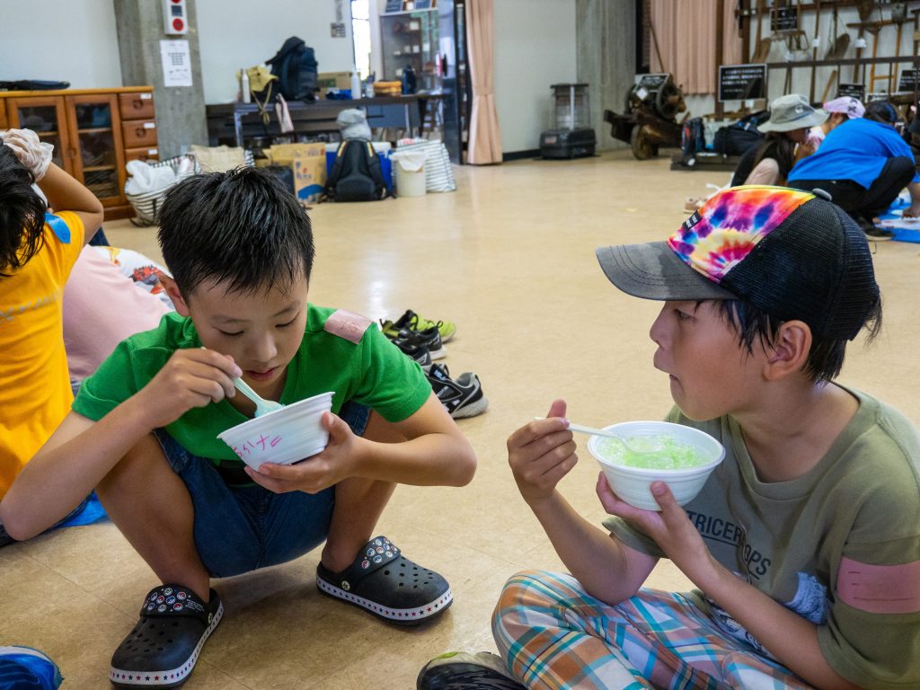 そして、【かき氷ミッション】では、自分たちでかき氷機で作りました。なかなか最初は難しかったけど、自分たちが食べたり量を入れて美味しく食べました。