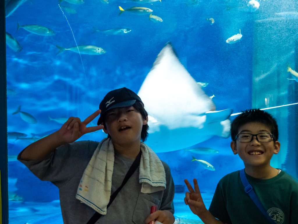 キャンプ最終日は「渋川海水浴場・マリン水族館」で実施。