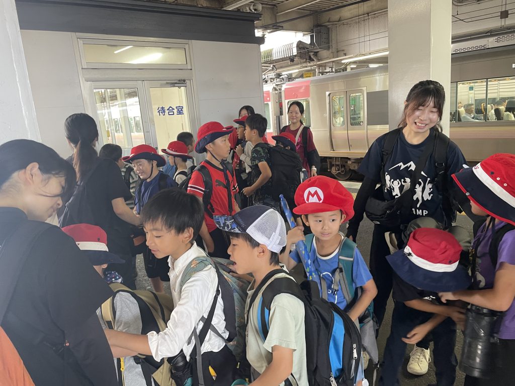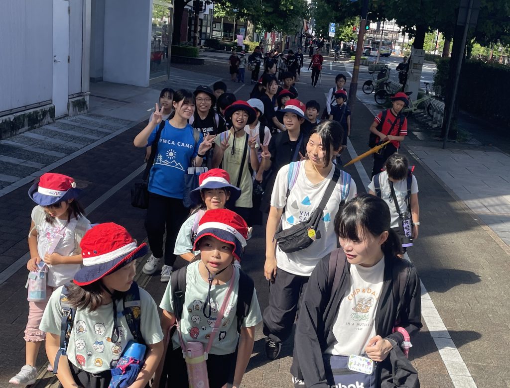 電車の中では、グループで静かに岡山駅に到着後、歩いてYMCAせとうちまで行きました。