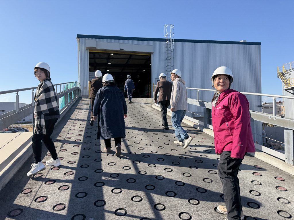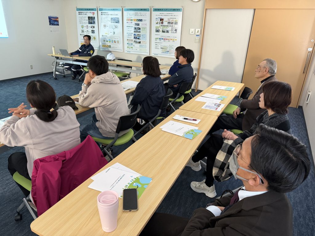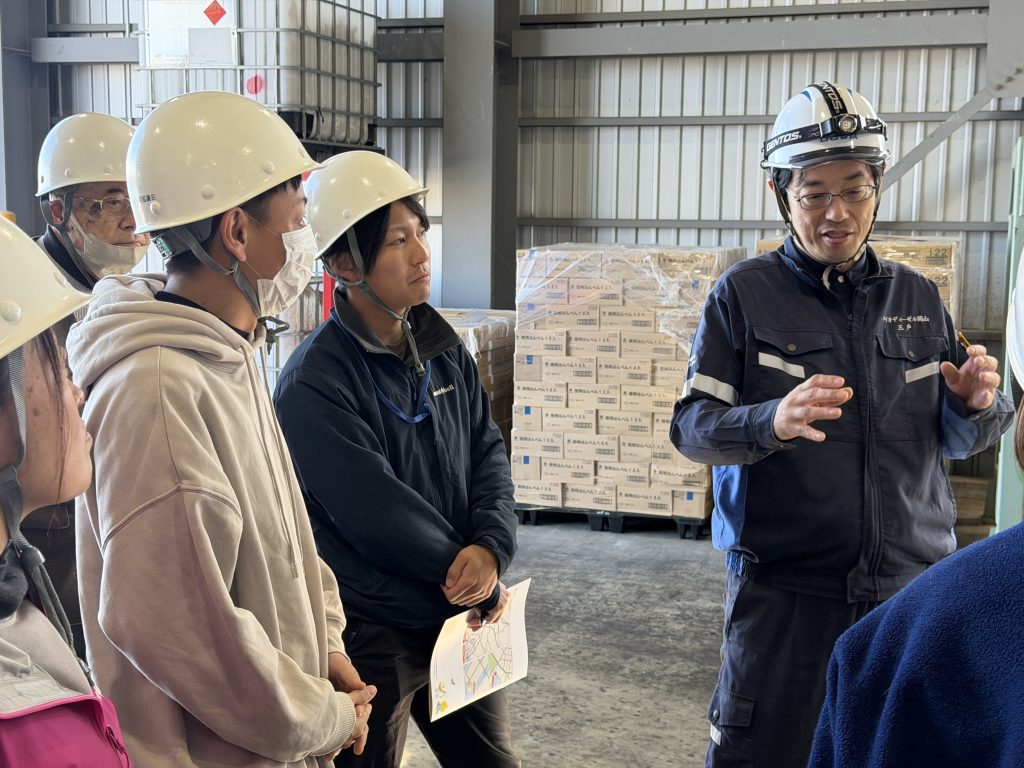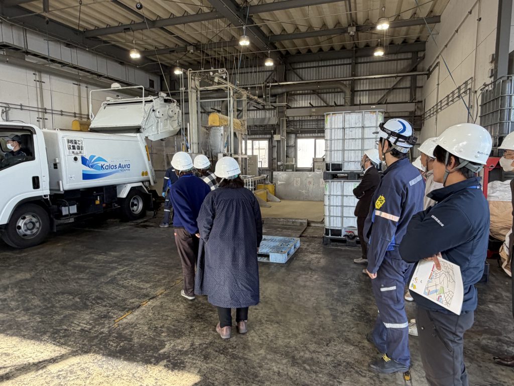 初めはバイオディーゼル岡山とそのグループ企業の説明をうかがい、廃棄される食品をどのように電気に換えるのか、その仕組みと意義を教えていただきました。