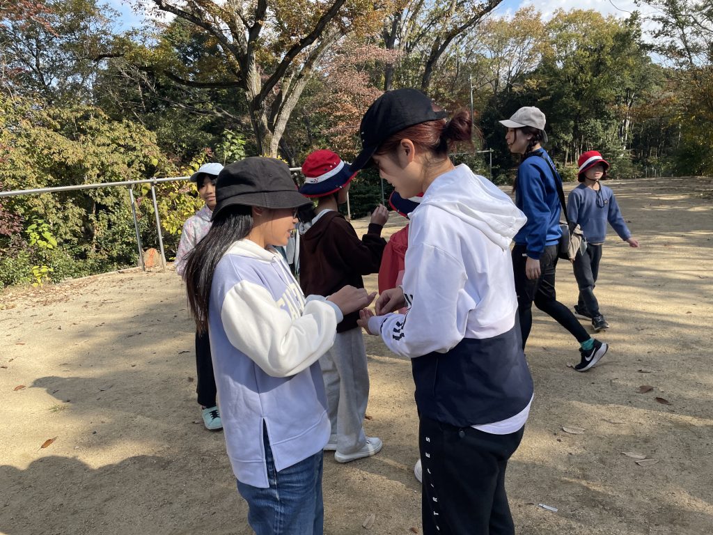 いつもより遅い時間でのスタートとなりましたが、集合場所には、子どもたちが笑顔で元気に集まってくれました。到着後すぐ、グループ対抗の「おはじき集めジャンケン」に挑戦しました。他のグループの友だちやリーダーと一緒にジャンケンをしておはじきを集め、 「リーダー、こんなに集めたよ!」「あと1個しかないよ」と、ゲームを楽しんでいる様子が見られました。