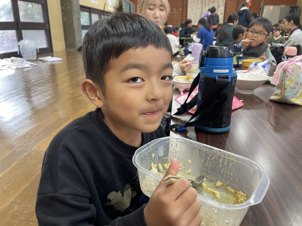 昼食は、「香川アドベンチャーキッズ」の仲間たちと一緒に、リーダー特製のカレーをいただきました。「とってもおいしい!」「最高!」と大好評で、あっという間に完食。お腹も心も満たされる時間となりました。