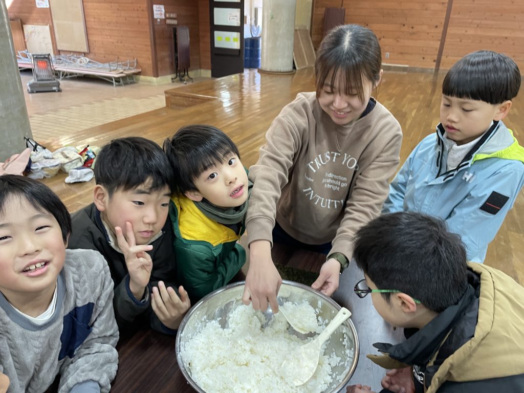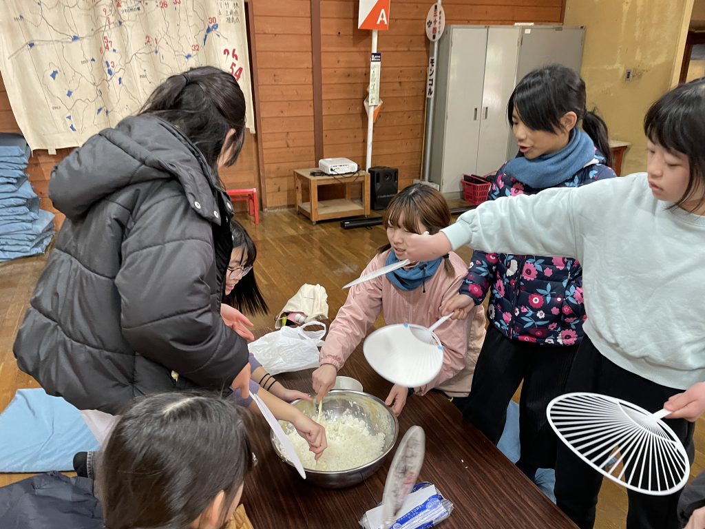 今年の恵方「南南東」を向き、願い事を思い浮かべながら黙々と食べ進めます。静寂のあとの「めっちゃ美味しかった!」という笑顔が印象的でした。リーダー特製のあたたかいお味噌汁も大好評で、心もお腹も満たされる時間となりました。