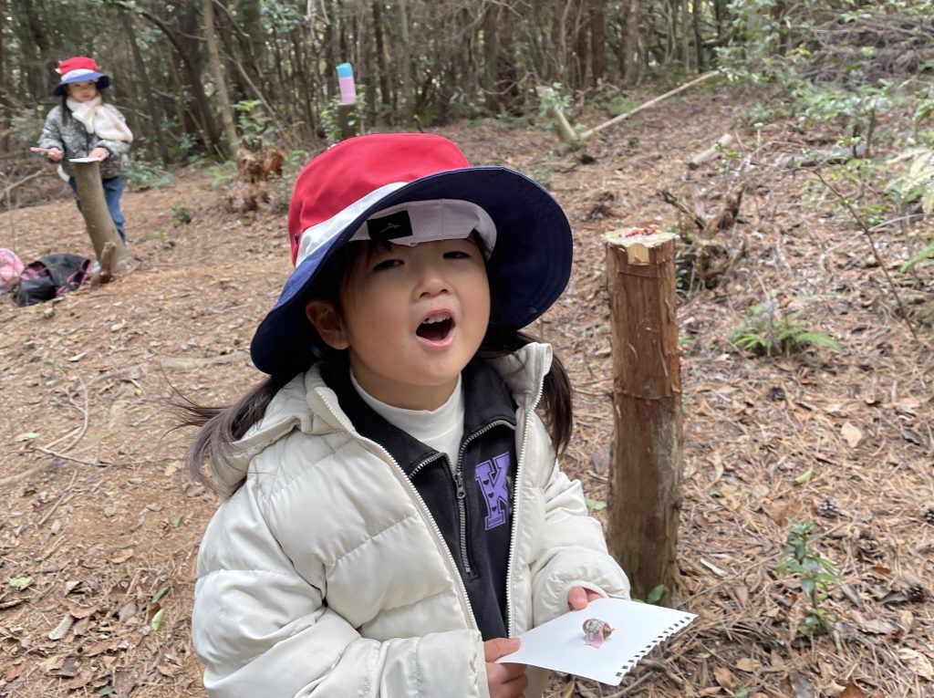 午後は、グループタイムです。森のお店屋さんで「いらっしゃいませ~」と元気に声をかけてお客さんを呼んだり、基地作りでグループだけの秘密の暗号を作ったり、いろんなところに探検に出かけたりなど、時間いっぱいグループで考えた遊びを楽しみました。