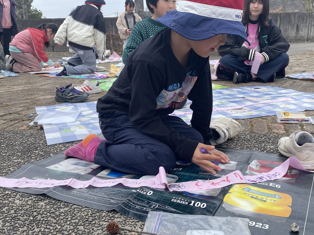友だちやリーダーと言葉を交わしながら、世界に一つだけのハチマキが完成しました。