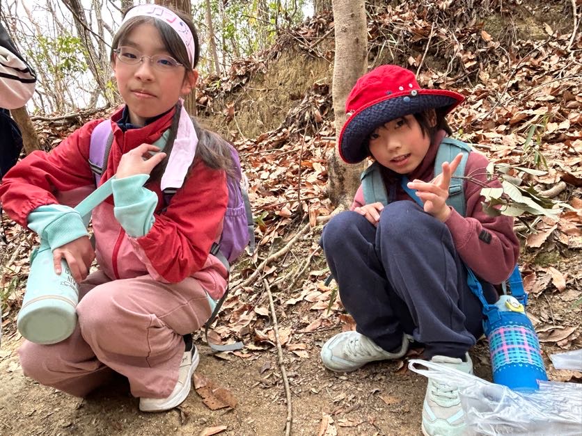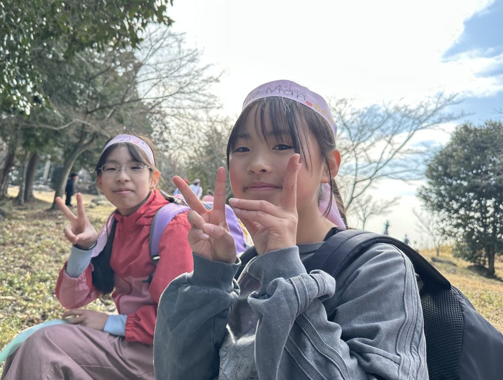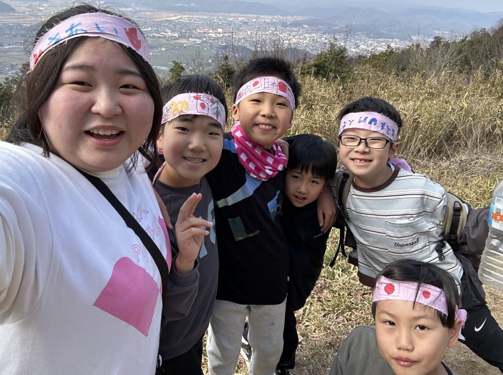 幼児グループは、目的地の「幸山」へ無事到着!「景色が最高!」と、絶景を眺めながら思いきり遊びました。小学生グループはさらに先の「福山」へ。途中で弱音がこぼれることもありましたが、励まし合って登頂に成功!頂上での喜びは大爆発でした。