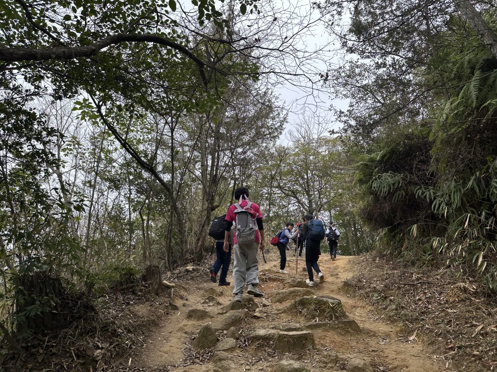 最初は長く続く上り坂。高い階段の段差に苦戦する場面もありましたが、「大丈夫?」「疲れてない?」と仲間を気遣いながら一歩ずつ進みます。すれ違う登山客の方々にも「こんにちは!」と気持ちの良い挨拶ができました。
