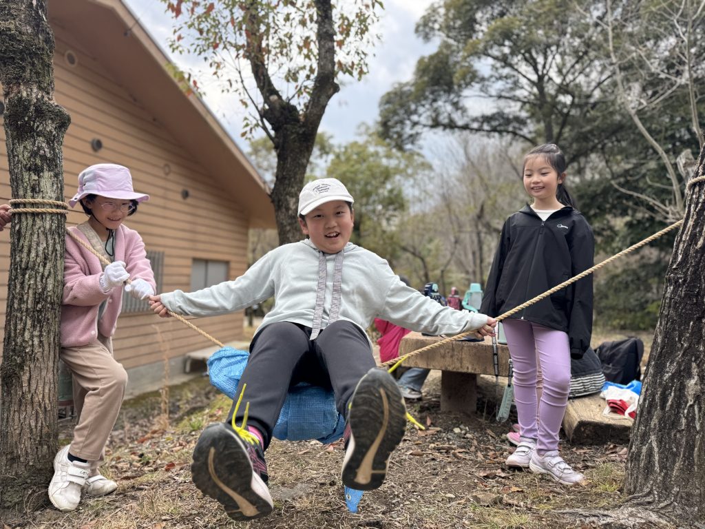 グループで相談して「今これをやりたい!」を形にする自由な時間です。基地づくり・山散策・ハイキング